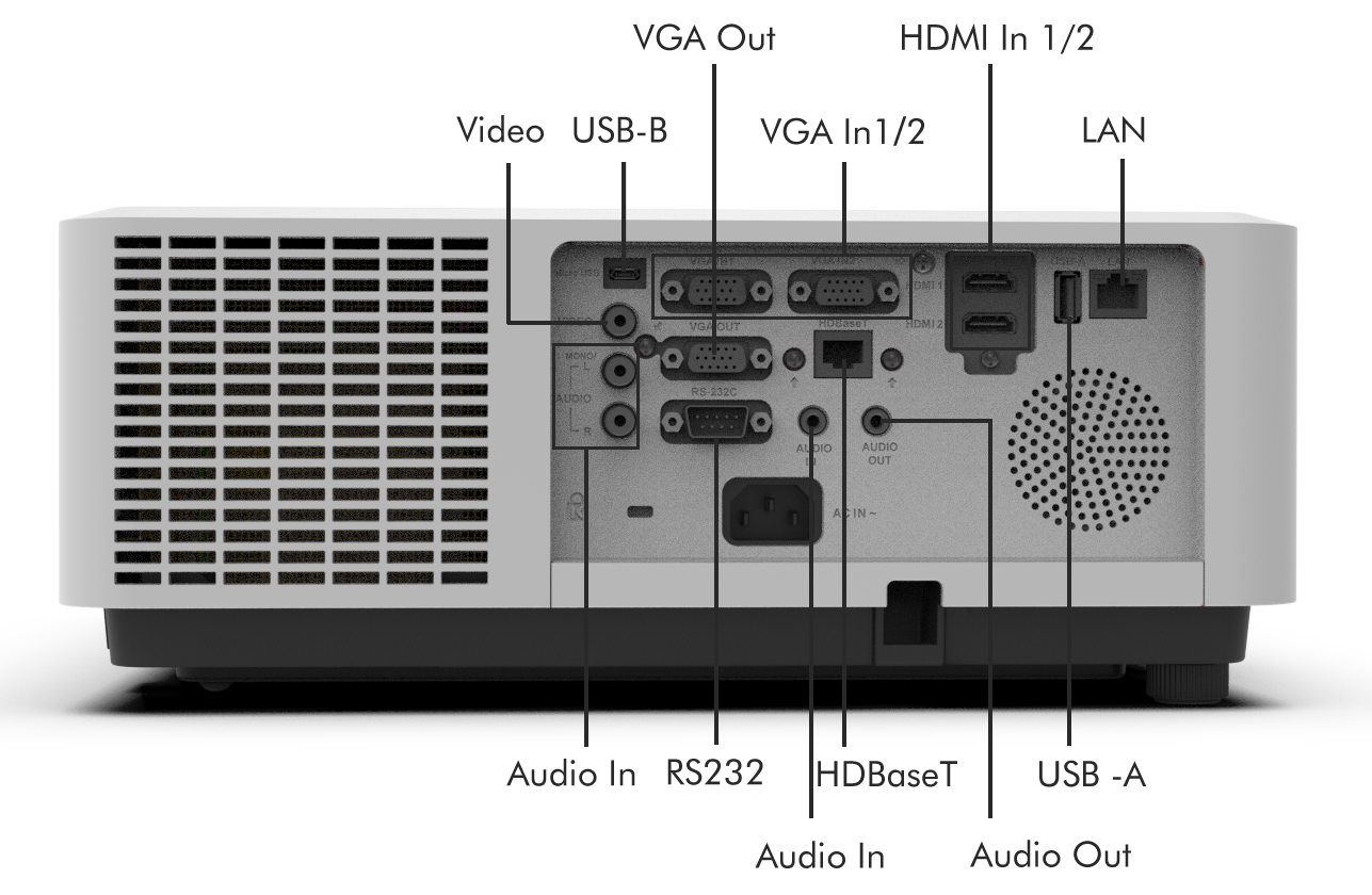 Professionally Integrated, Universally Compatible - Engineered for demanding environments, the projector offers broad connectivity options for flawless system integration. It provides robust interfaces such as HDBaseT for long-distance signal transmission, HDMI, RS-232, and LAN control, ensuring reliable compatibility with both modern and legacy equipment in conference rooms, classrooms, and control rooms.
